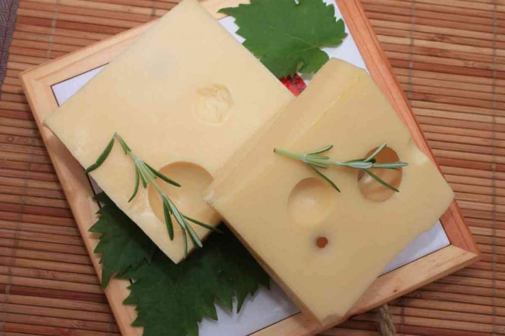 They are yellow, semi-hard Swiss cheese with relatively high-fat content and look peculiar because it has holes all over it, which is a result of the fermentation process.